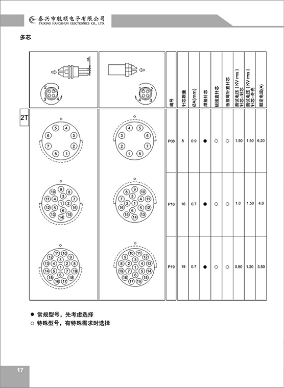 ⑥ 接插件芯數(shù):2、3、4、5.。。。。芯