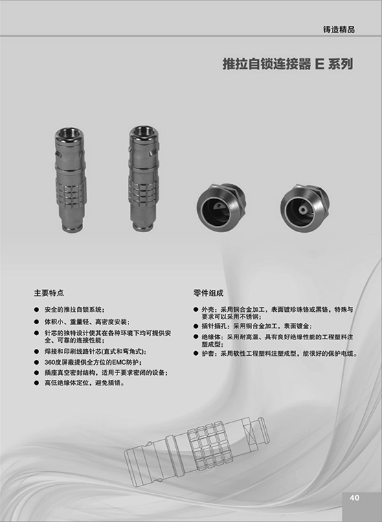 本公司專業(yè)生產(chǎn)銷售雷莫防水連接器圓形防水連接器,能與瑞士雷莫Lemo、德國歐度ODU 同等型號系列產(chǎn)品完全互配互換。廣泛應(yīng)用于通訊、電子、檢測與測量、機械設(shè)備、醫(yī)療器械及儀器儀表等行業(yè);特別適用于需頻繁連接分離、需屏蔽的儀器儀表及設(shè)備上的電連接。