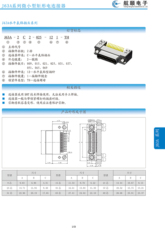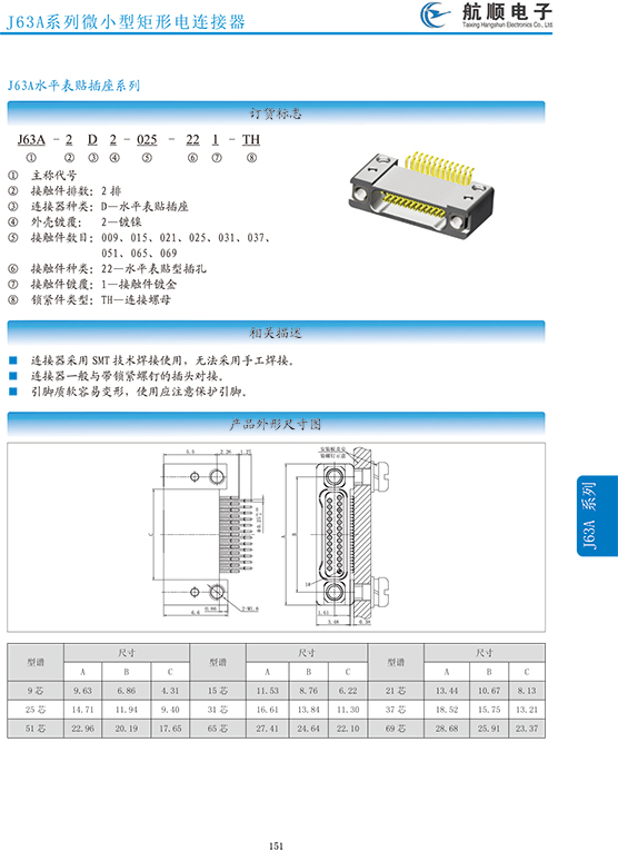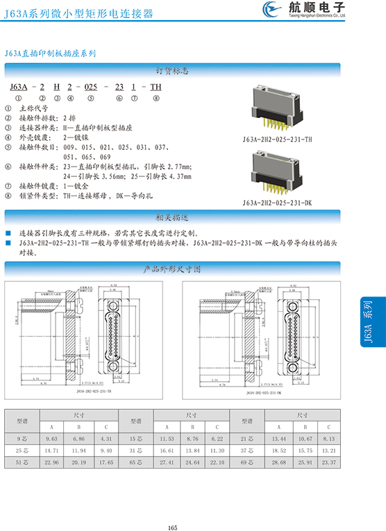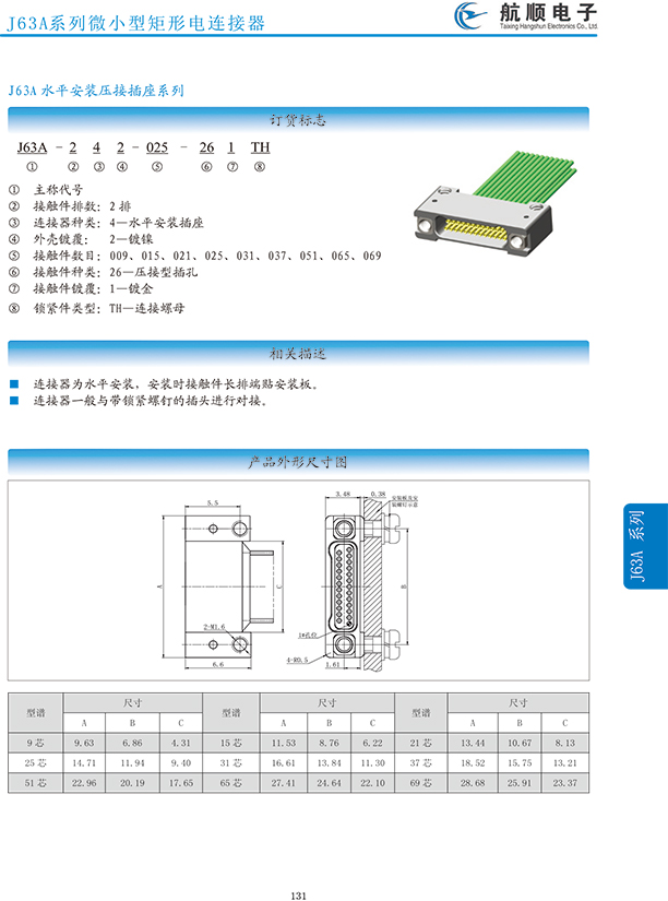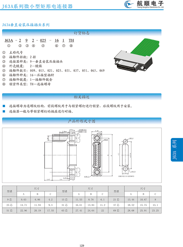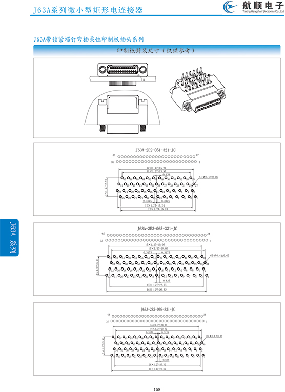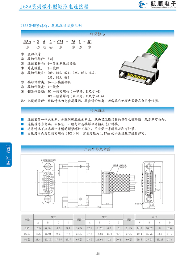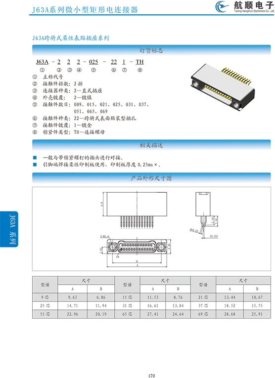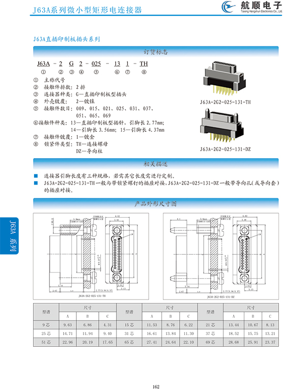 產(chǎn)品特點: 規(guī)格有9、15、21、25、31、37、51、65、69芯; 采用柔性針結(jié)構(gòu),間距為0.635mm; 占用空間小,頭、座采用螺釘螺母旋合對接,插拔柔和、鎖緊可靠; 產(chǎn)品密度高、體積小、重量輕、可靠性高;